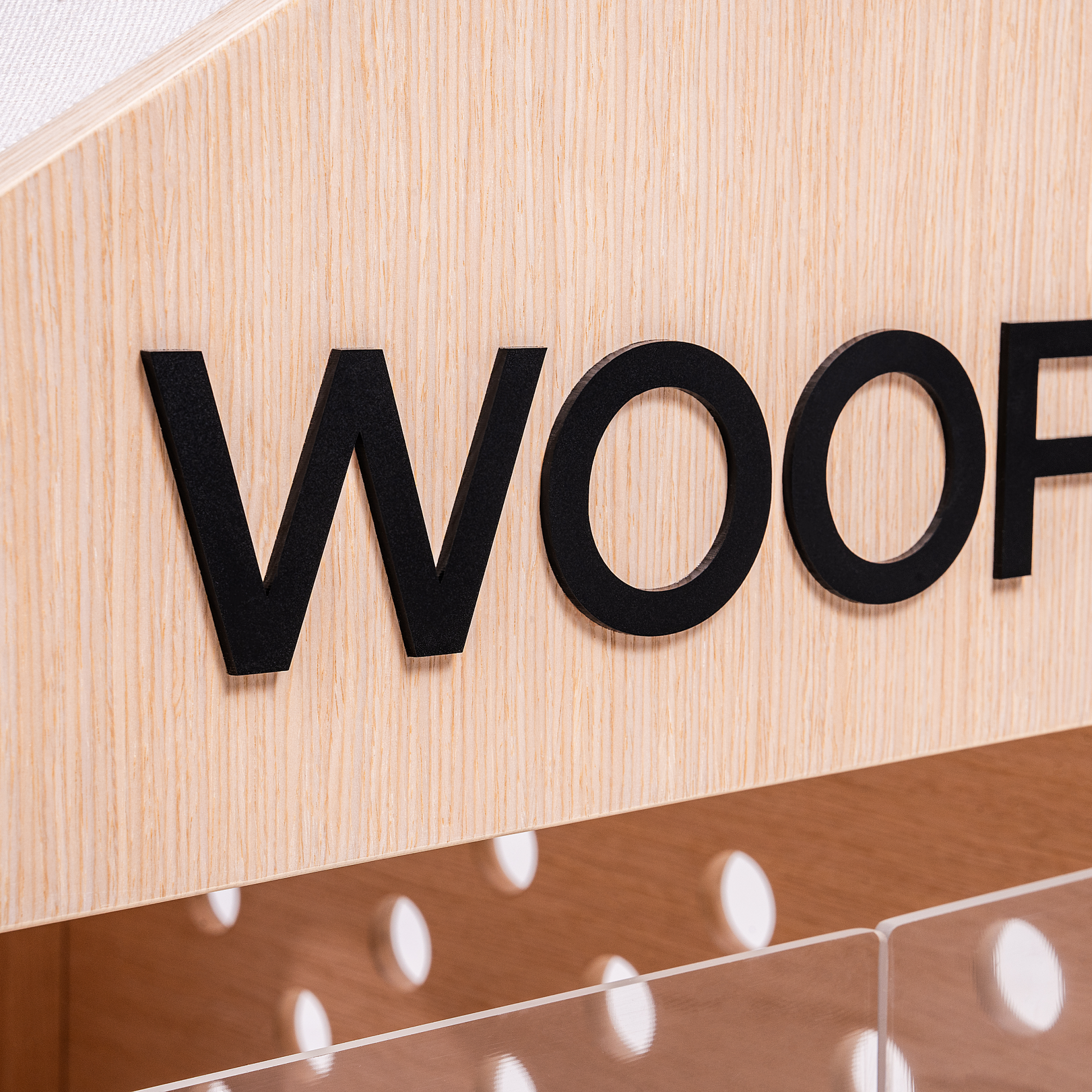 The Wooffy House is crafted from premium plywood and transparent acrylic doors, ensuring durability and a sleek appearance.
