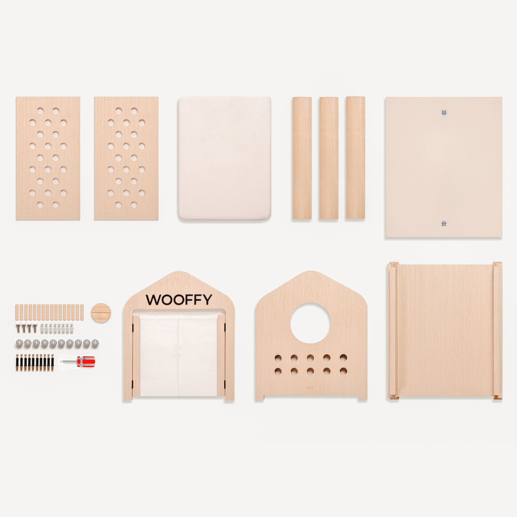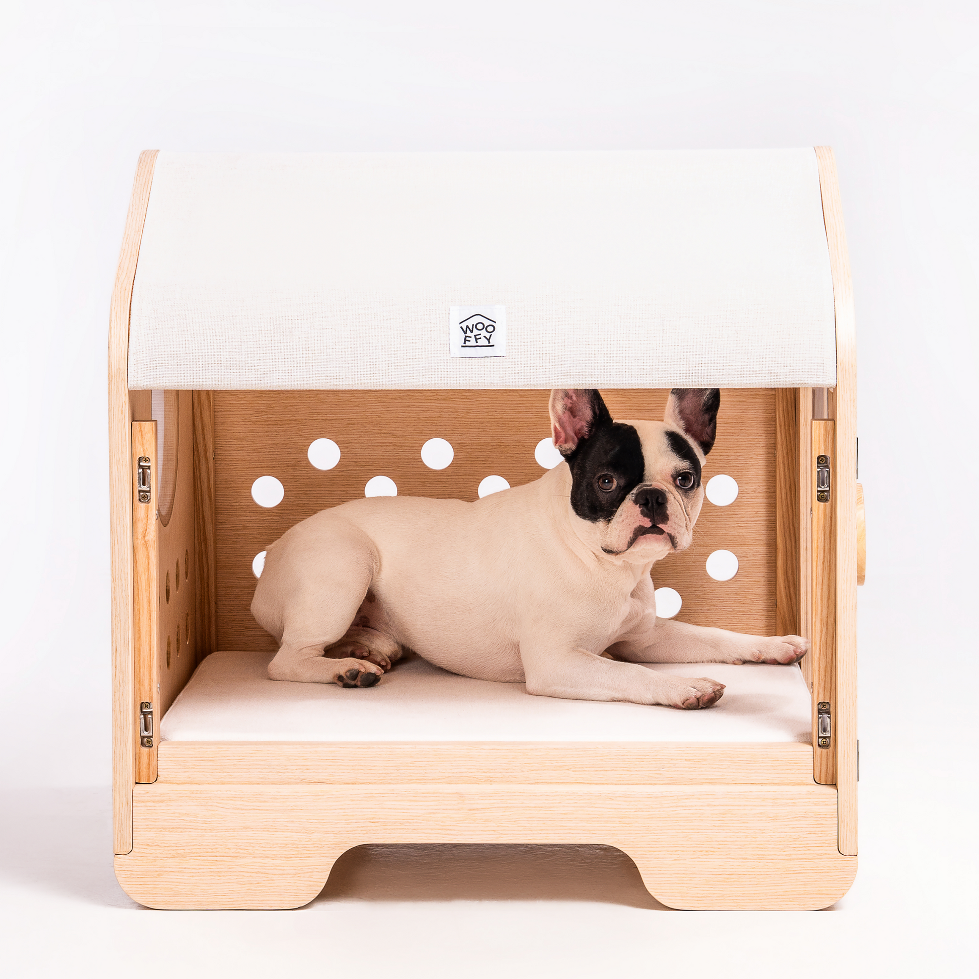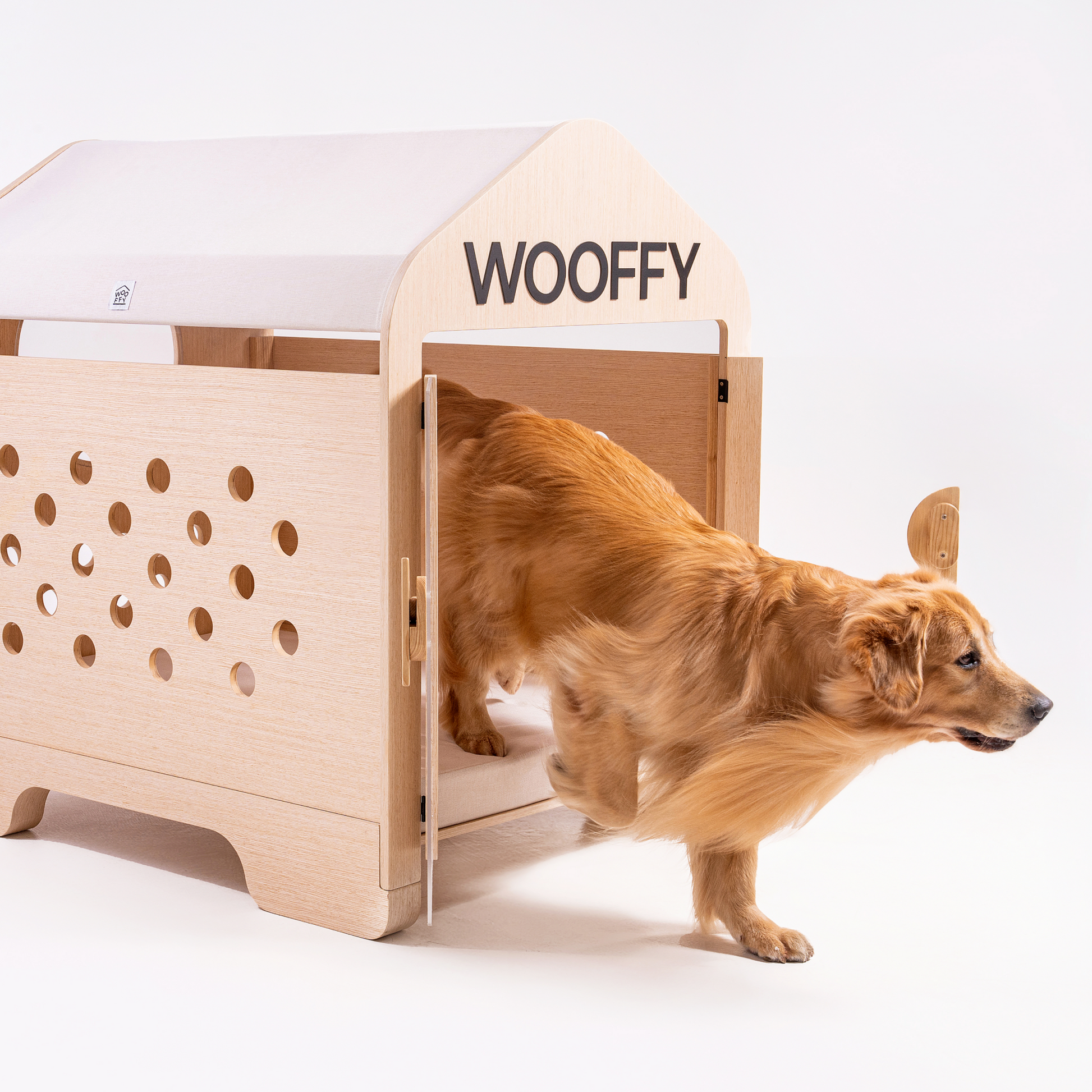 Serving as a modern alternative to traditional indoor dog houses, the Wooffy House combines style and functionality for your pet's comfort.