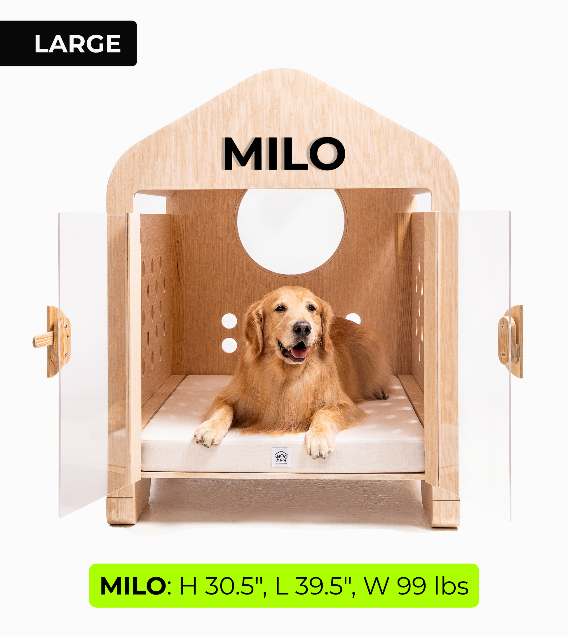 As a stylish and functional alternative to traditional indoor dog kennels, the Wooffy House enhances both your pet's comfort and your home's decor.